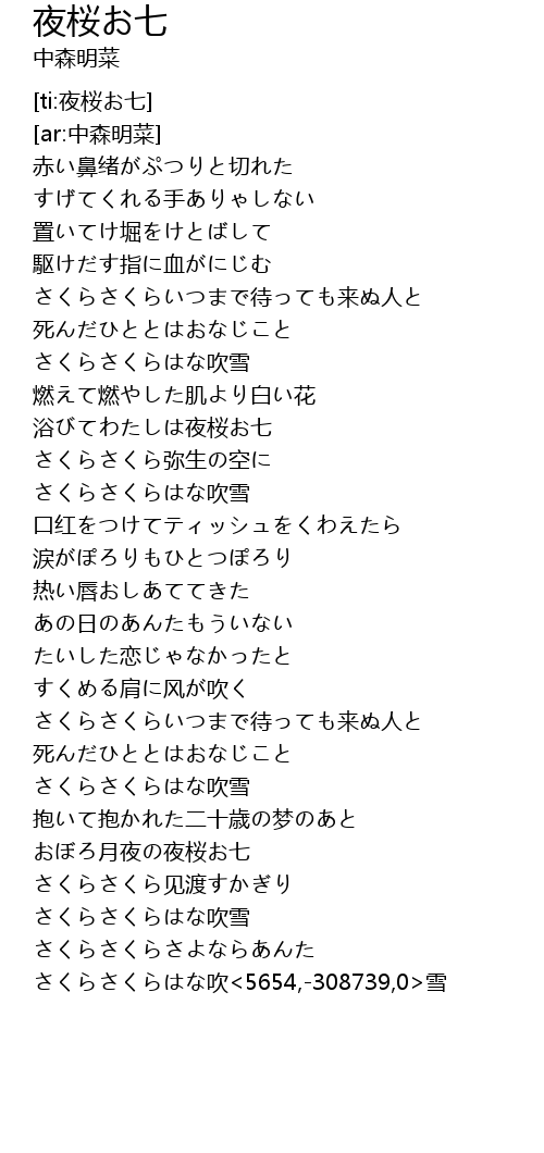 | [01:57.253] | 浴びてわたしは夜桜お七 |
