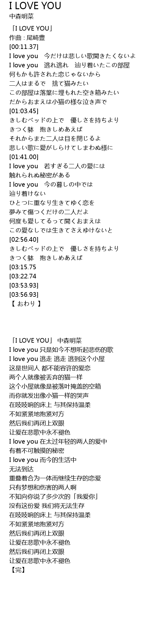 | [00:03.37] | 「I LOVE YOU」 |