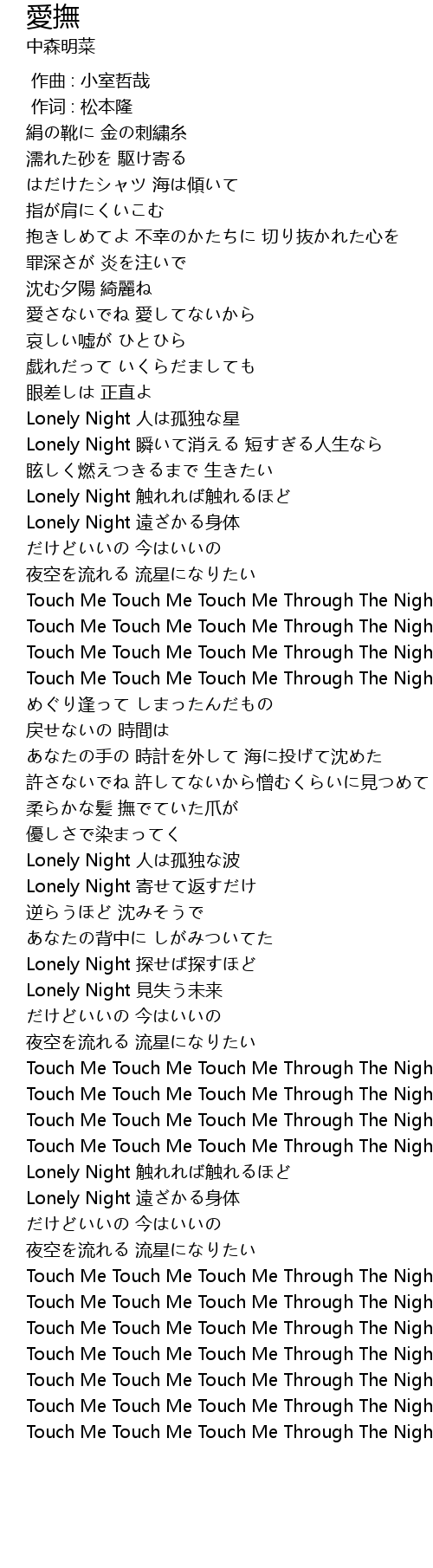 | [02:15.55] | Touch Me Touch Me Touch Me Through The Night |