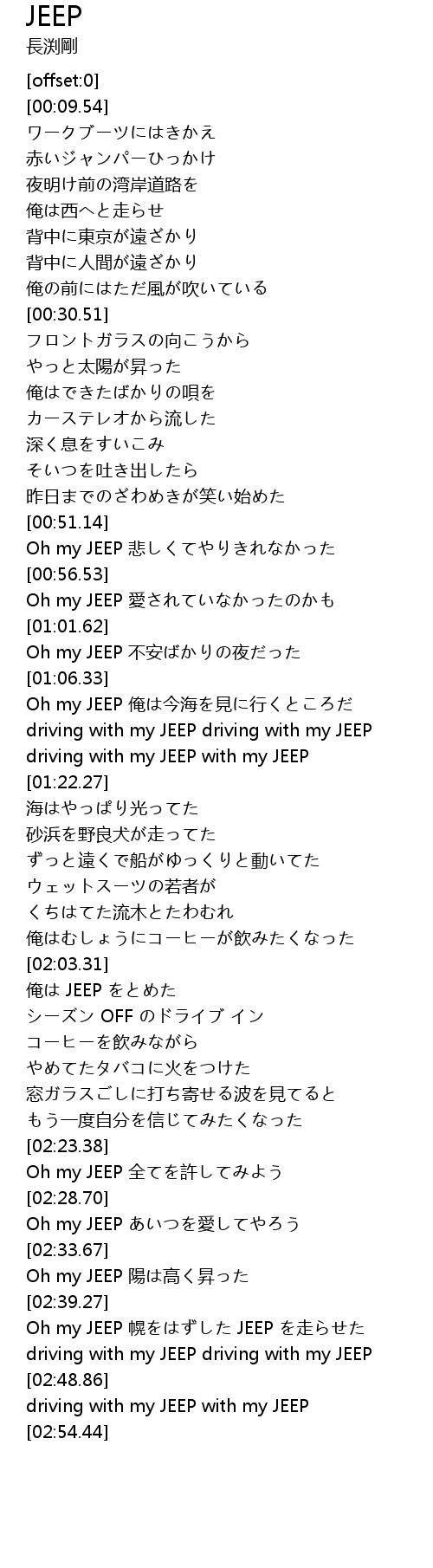 | [02:29.93] | Oh my JEEP あいつを愛してやろう |