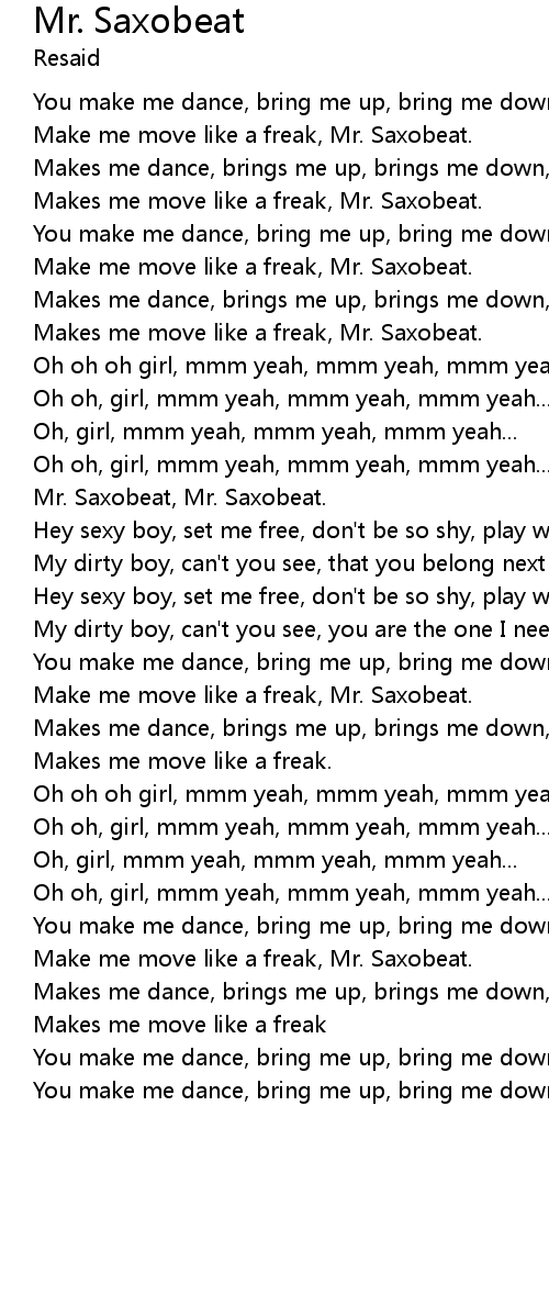 You make me dance, bring me up, bring me down, Mr. Saxobeat. |