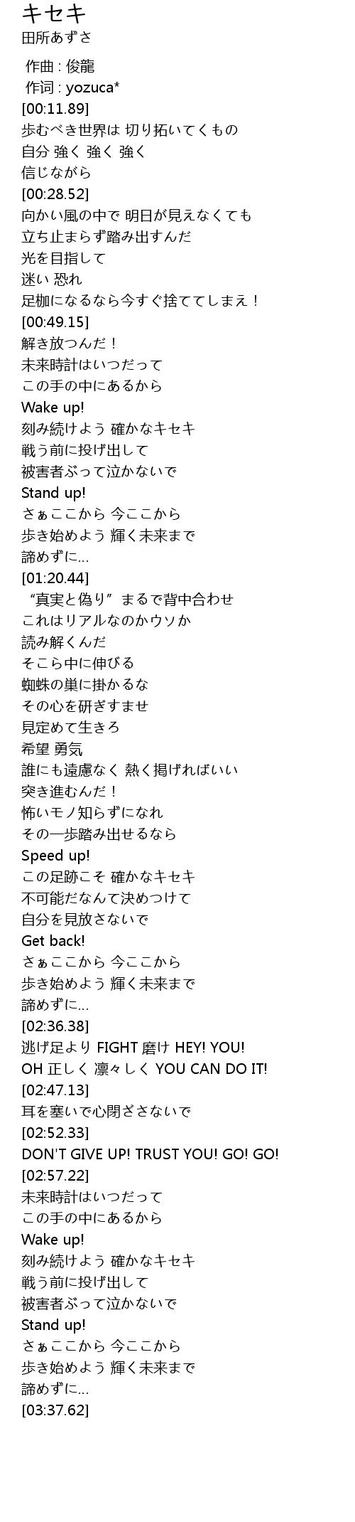 | [03:14.27] | 刻み続けよう 確かなキセキ |