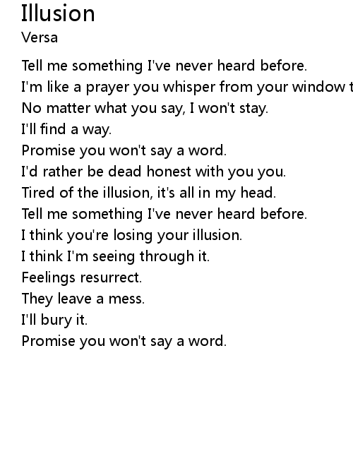 | Tired of the illusion, it's all in my head. | |