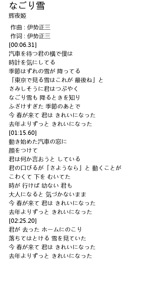 | [00:32.28] | なごり雪も 降るときを知り |