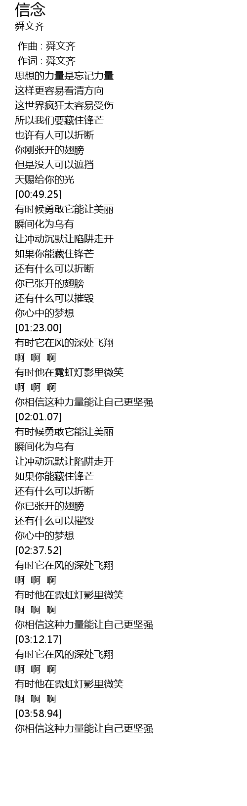| [01:50.97] | nǐ xiāng xìn zhè zhǒng lì liàng néng ràng zì jǐ gèng jiān qiáng |