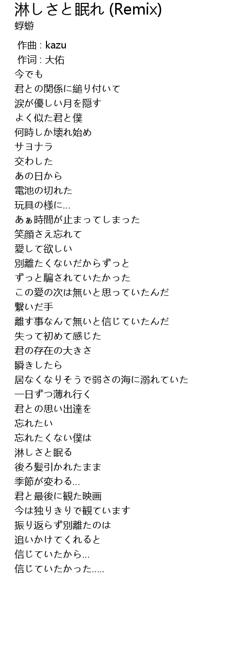 | [02:39.09] | 離す事なんて無いと信じていたんだ |