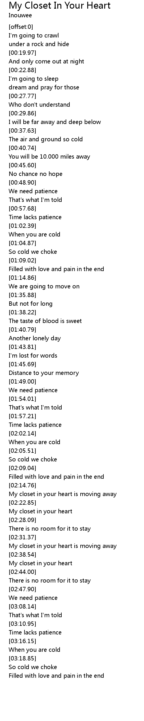 My closet in your heart is moving away |