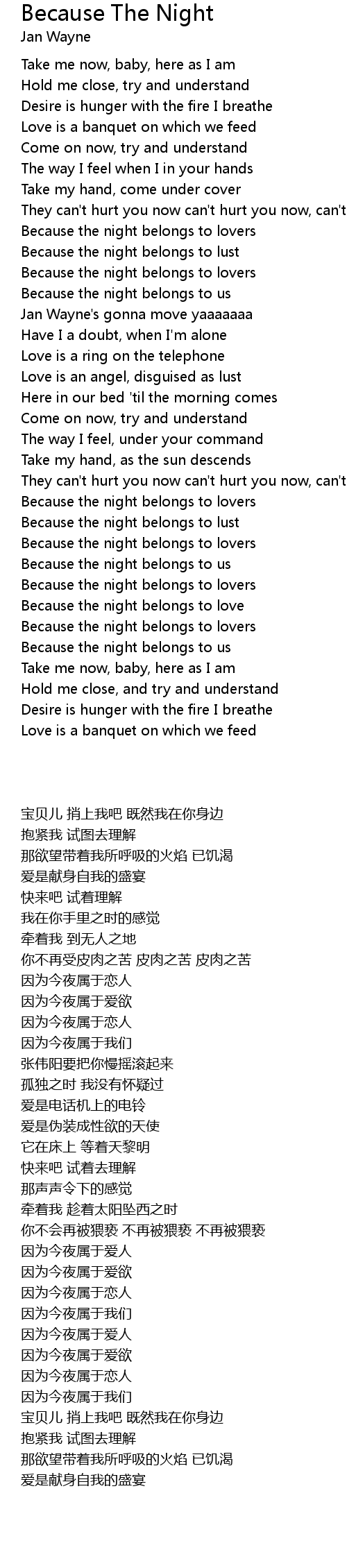 Because the night belongs to love |