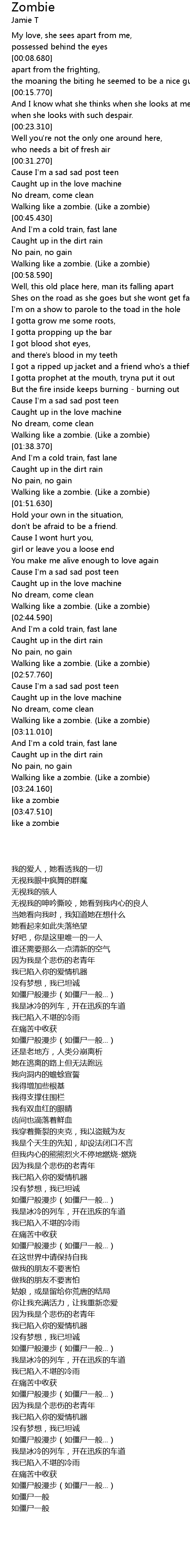 | [03:49.230] | like a zombie |