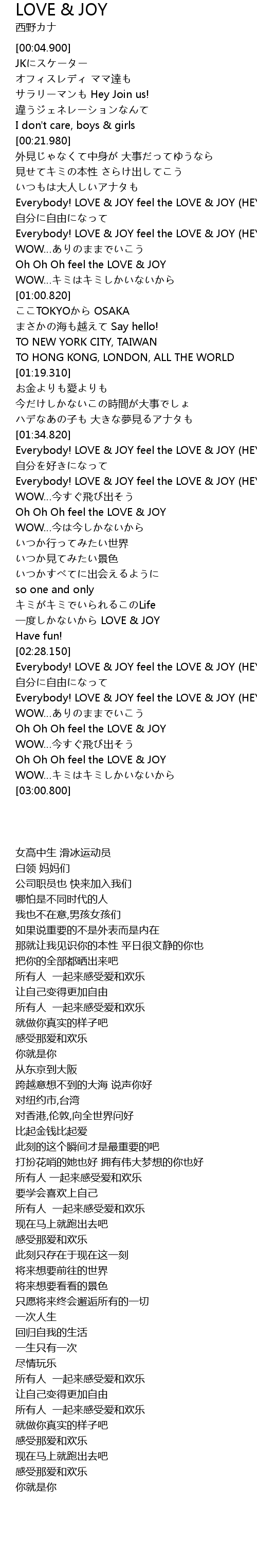 | [02:36.000] | Everybody! LOVE JOY feel the LOVE JOY HEY |