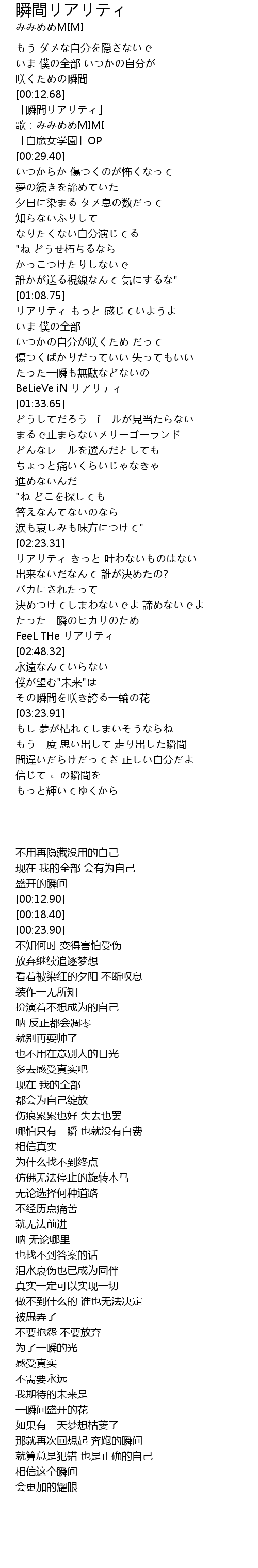 | [02:23.83] | リアリティ きっと 叶わないものはない |