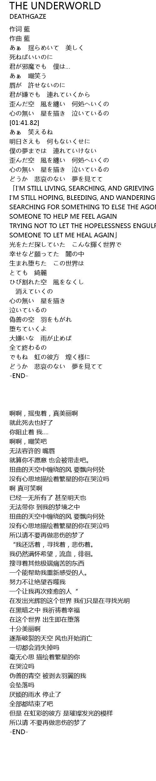 | [03:09.49] | I'M STILL HOPING, BLEEDING, AND WANDERING |