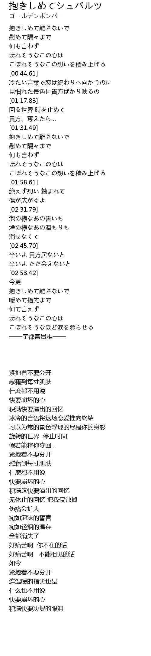 | [03:00.36] | 抱きしめて離さないで |