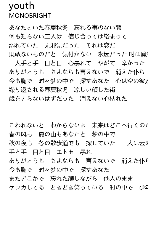 | 果敢ないものだと 気付かない 永远だった 时は魔物だ | |