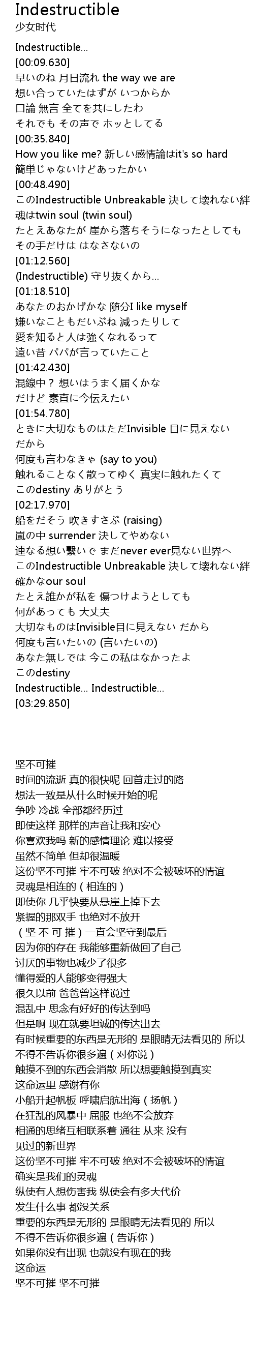 | [00:48.910] | このIndestructible Unbreakable 決して壊れない絆 |