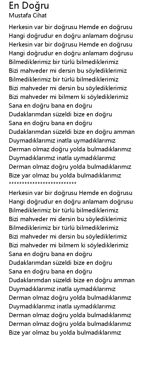 | Song | En Doğru |