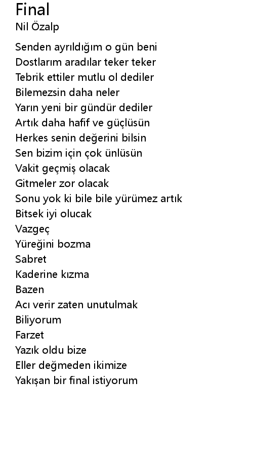 | Yak an bir final istiyorum |