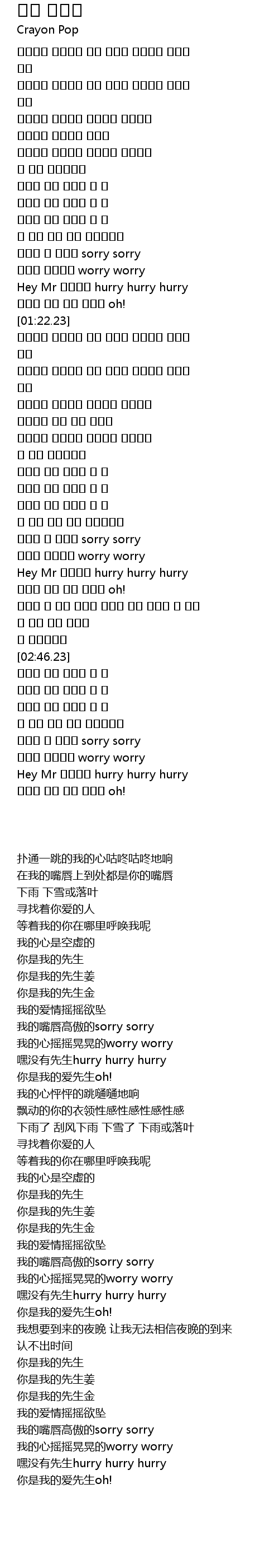 | [02:22.32] | Hey Mr 늦지않게 hurry hurry hurry |