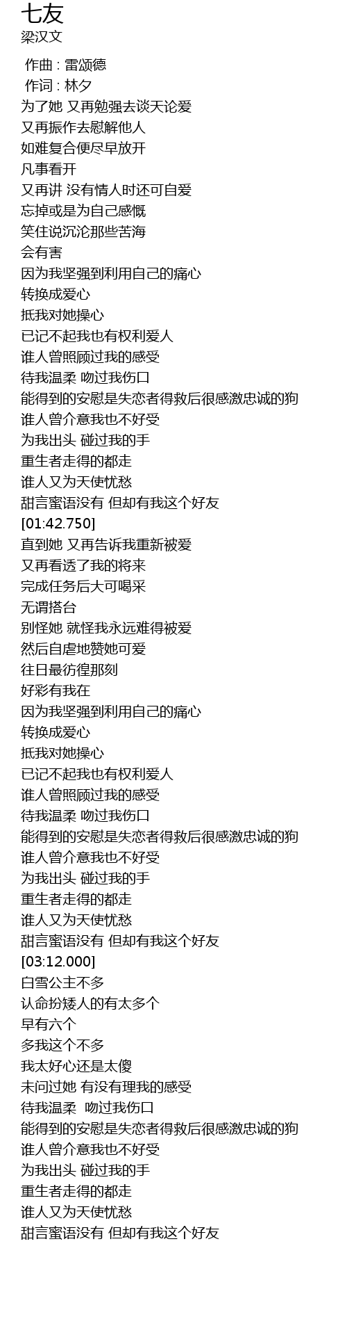 | [03:06.190] | tián yán mì yǔ méi yǒu dàn què yǒu wǒ zhè gè hǎo yǒu |