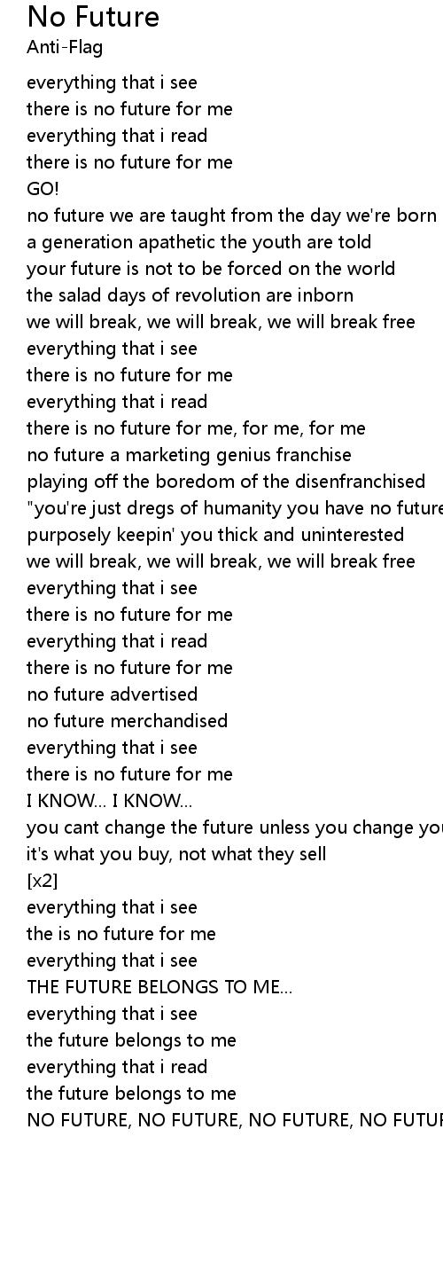 NO FUTURE, NO FUTURE, NO FUTURE, NO FUTURE BELONGS TO ME!!! |