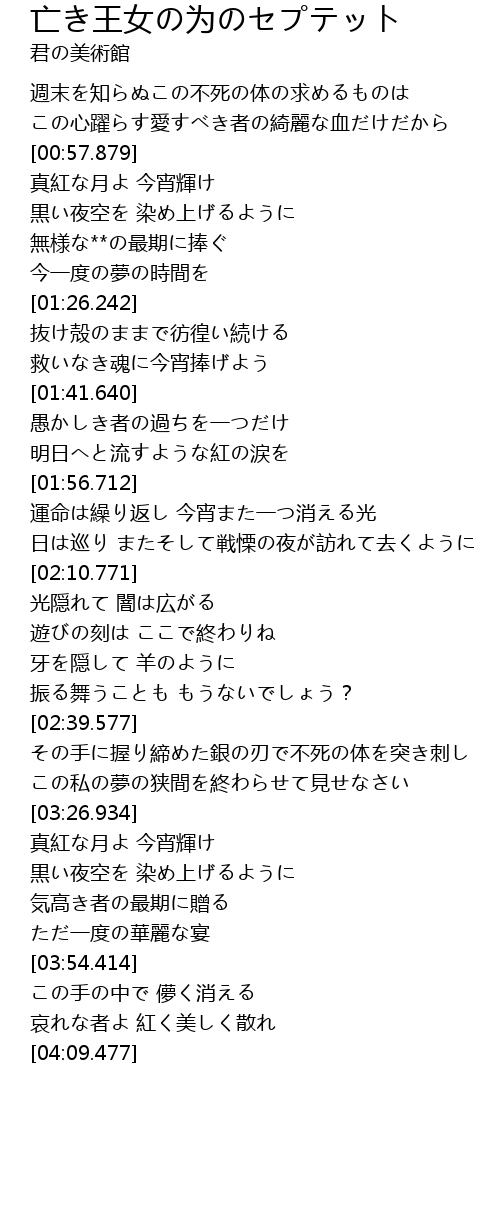 | [03:27.134] | 真紅な月よ 今宵輝け |