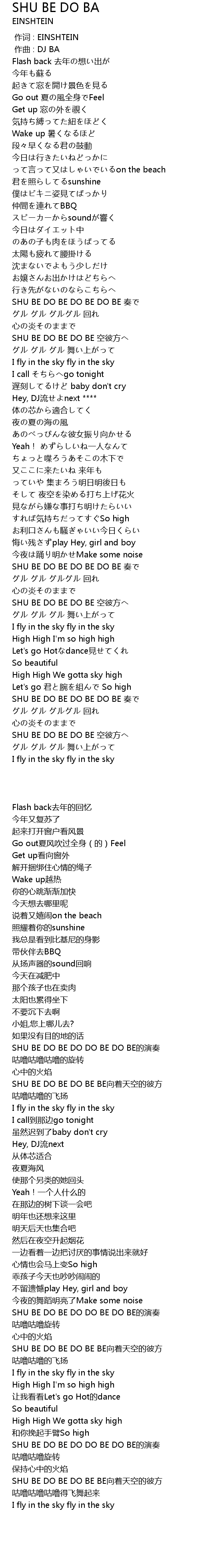 | [00:56.40] | SHU BE DO BE DO BE DO BE zou |