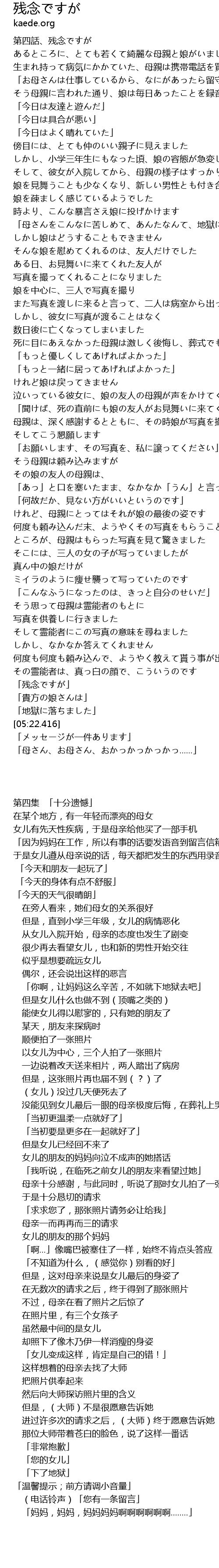 | [00:16.940] | 生まれ持って病気にかかていた、母親は携帯電話を買いやっていました |