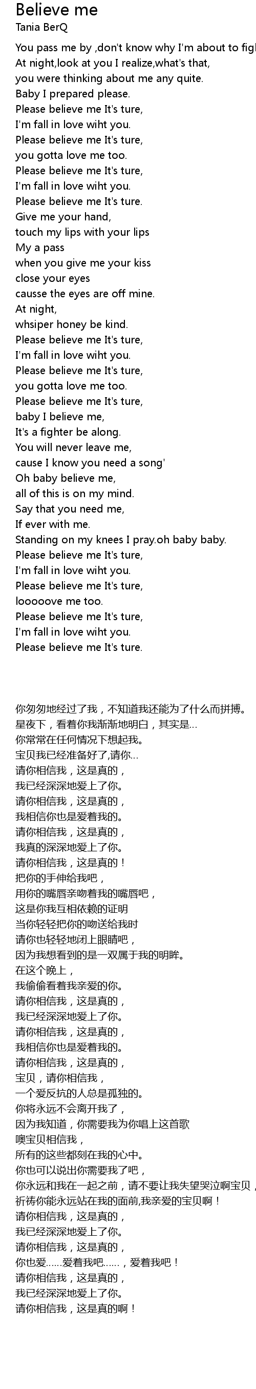Please believe me It's ture, |
