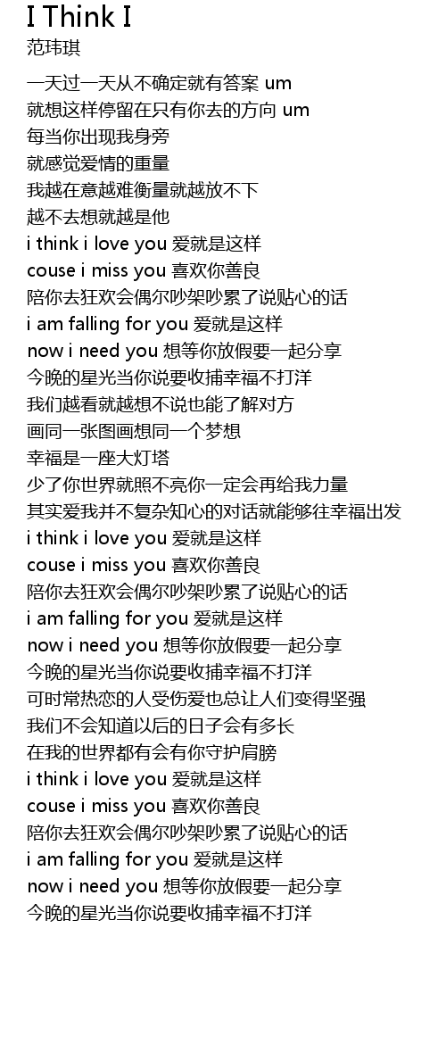 | [03:01.920] | i think i love you ai jiu shi zhe yang |