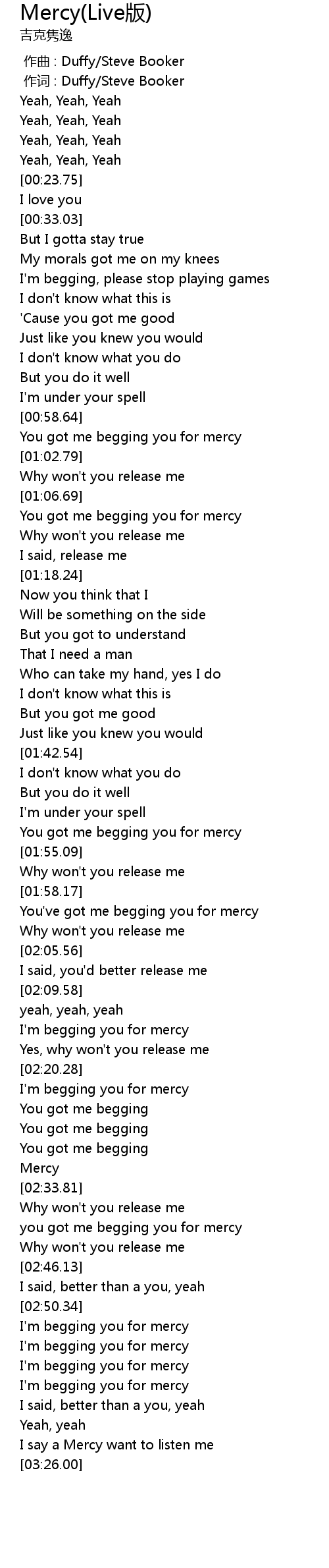 | [00:01.00] | 作词 : Duffy/Steve Booker |