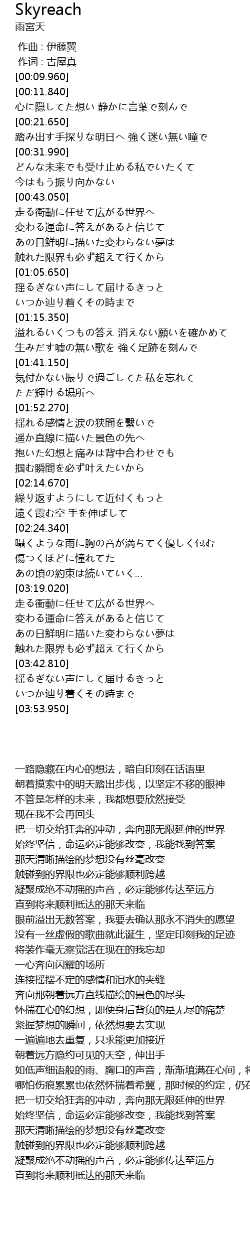 | [02:19.480] | 遠く霞む空 手を伸ばして |