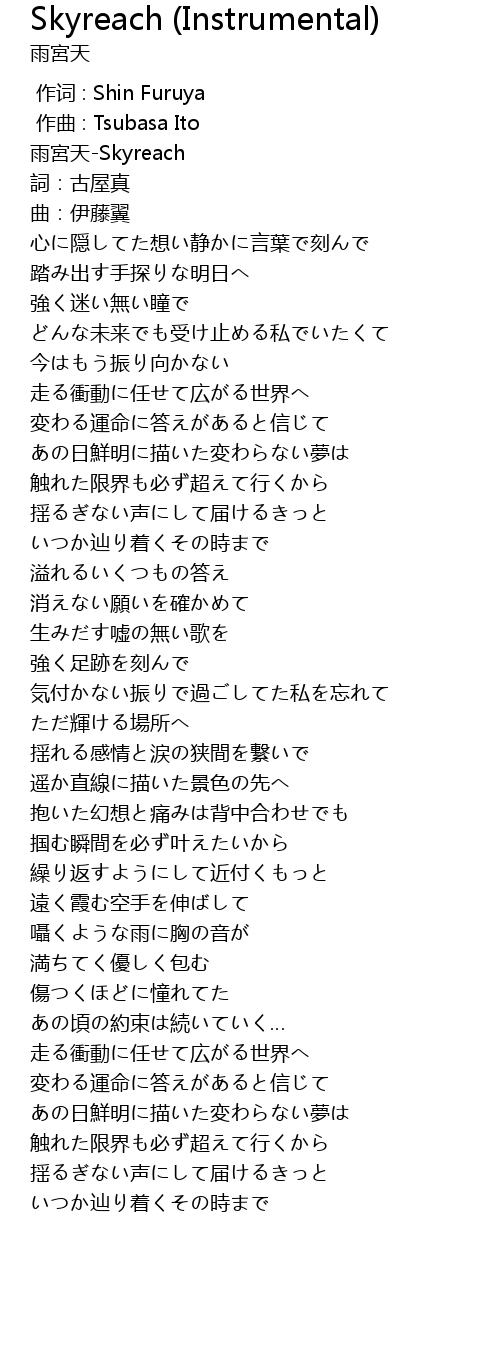 | [00:00.256] | 雨宮天-Skyreach |