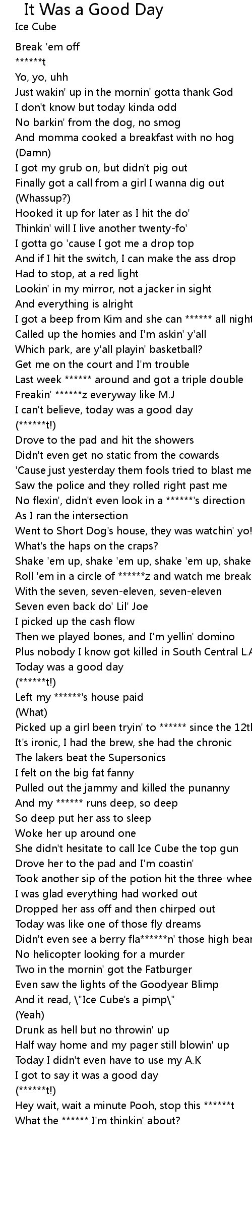 I got to say it was a good day |