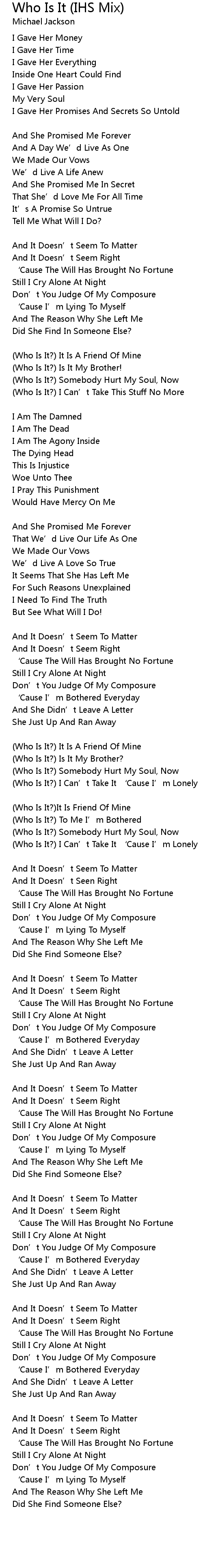 | Who Is It? I Can' t Take It ' Cause I' m Lonely | |