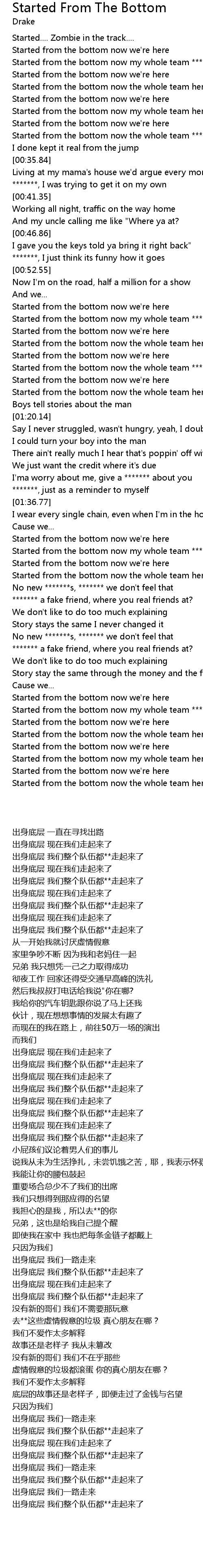 | [01:15.49] | Started from the bottom now the whole team here ******* |