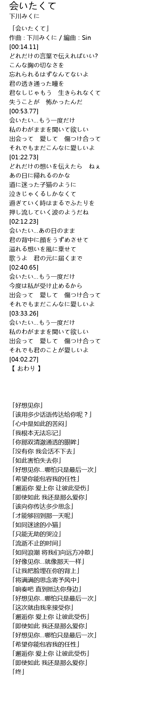 | [00:01.11] | 「会いたくて」 |
