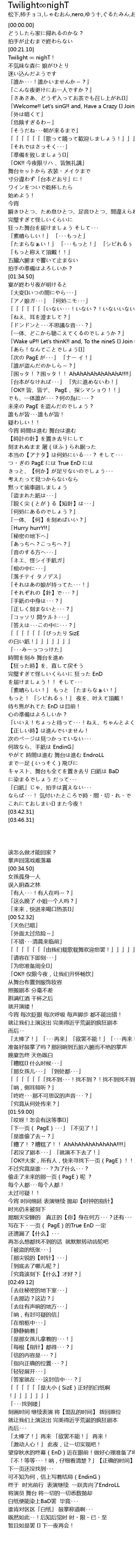 | [03:09.40] | 完璧すぎて怪しいくらいに 狂った EnD を届けましょう!! そして・・・ |