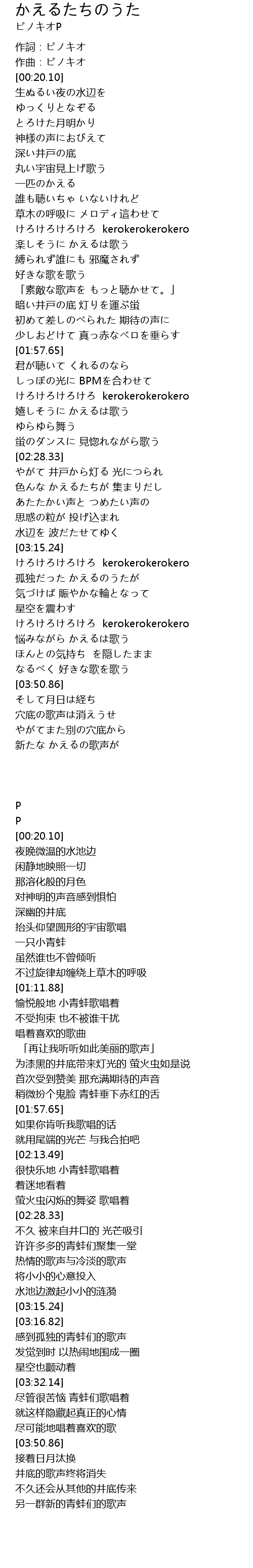 | [02:13.49] | けろけろけろけろ kerokerokerokero |
