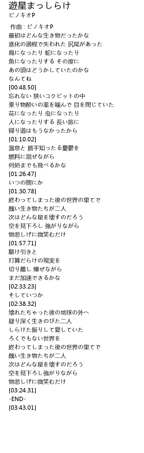 | [01:41.78] | 次はどんな星を壊すのだろう |