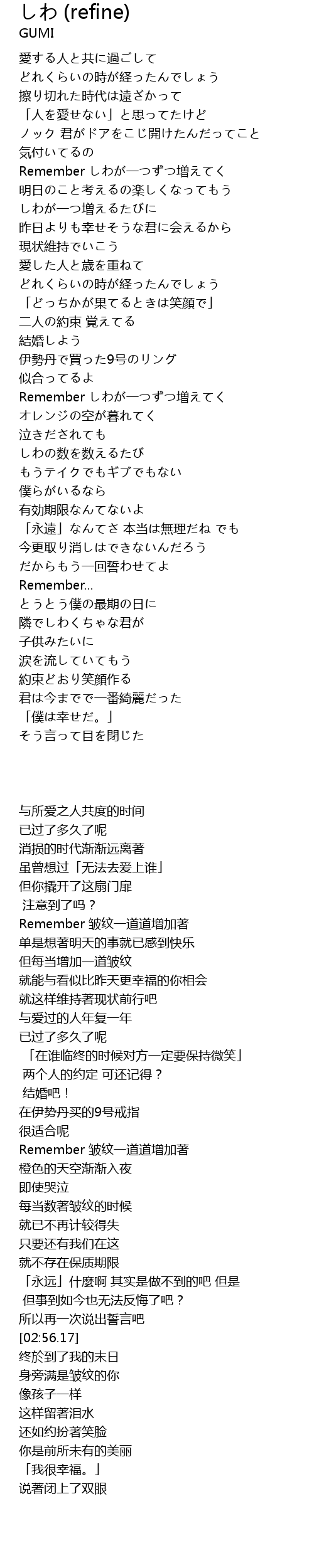 Remember しわが一つずつ増えてく |
