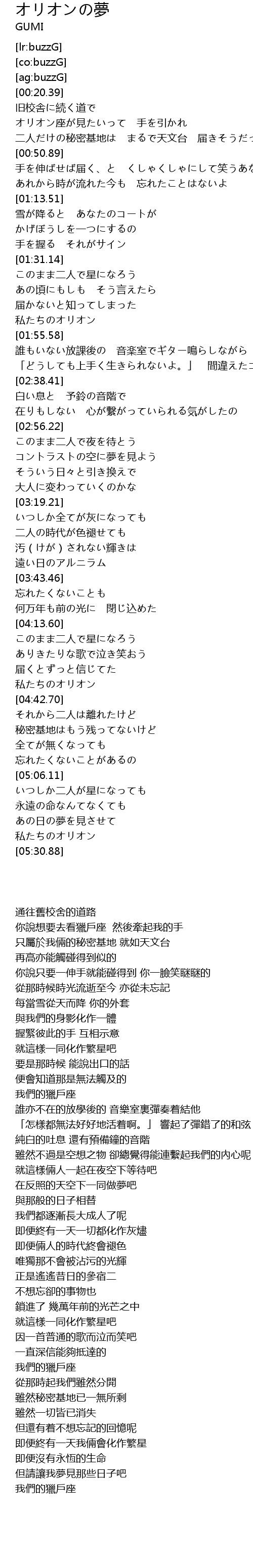 | [05:23.97] | 私たちのオリオン |