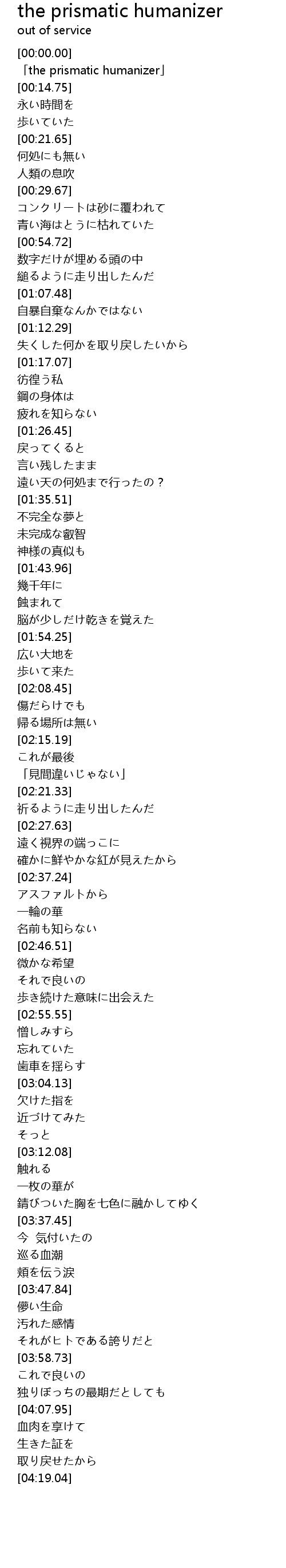 | [00:02.09] | 「the prismatic humanizer」 |