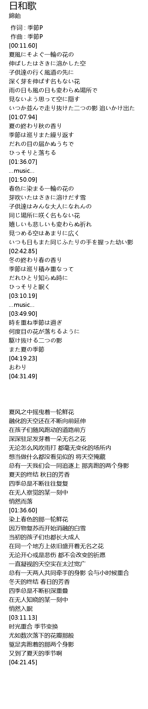 | [01:15.48] | 季節は巡りまた繰り返す |