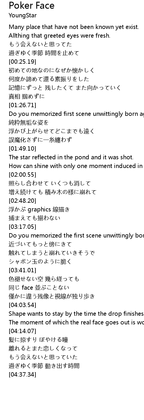 | [04:08.49] | The moment of which the real face goes out is wonderful. |