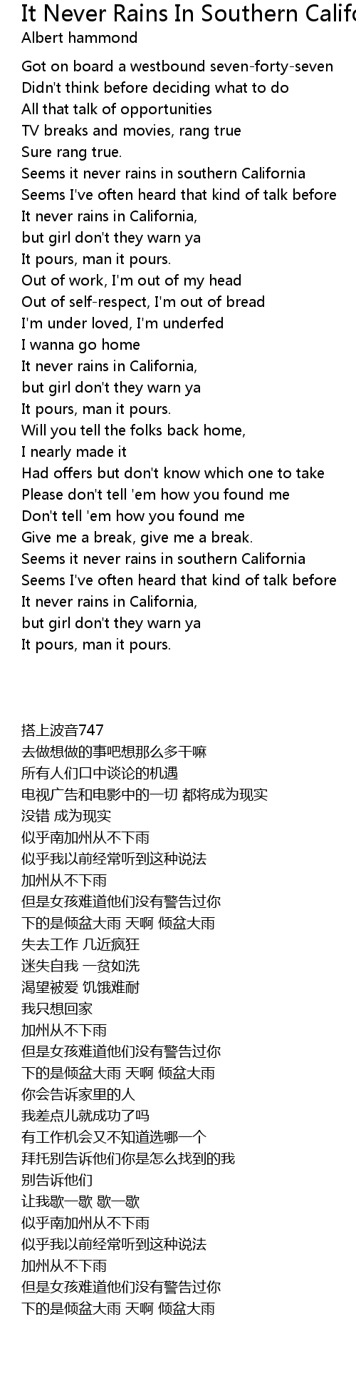 It never rains in California, |