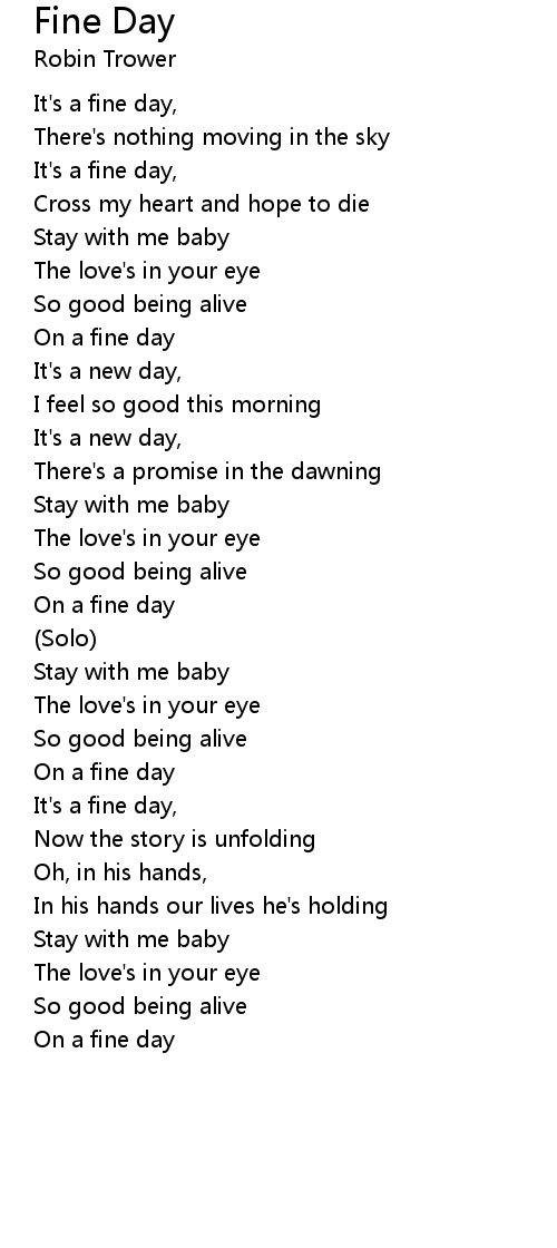 It's a fine day, |