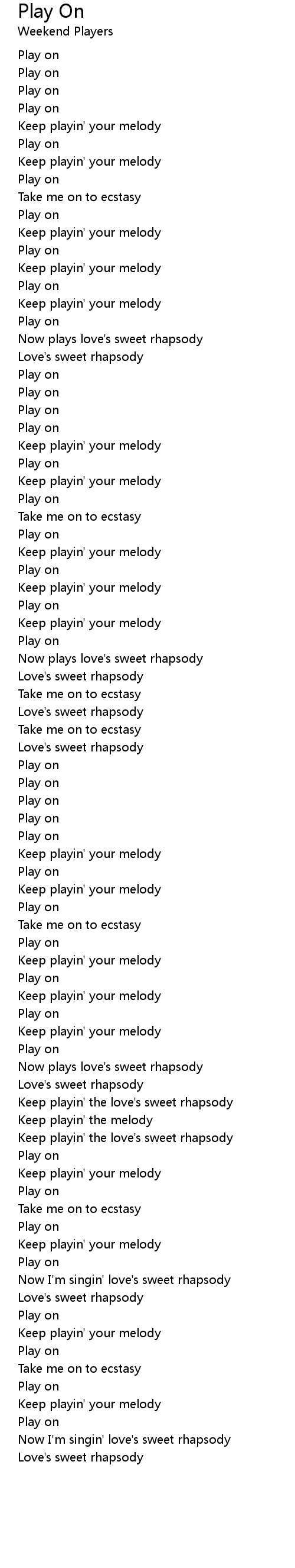 Keep playin' the love's sweet rhapsody |