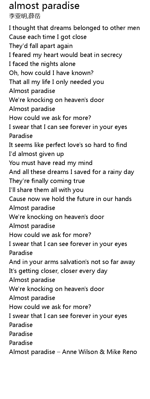 | [02:59.989] | Almost paradise |