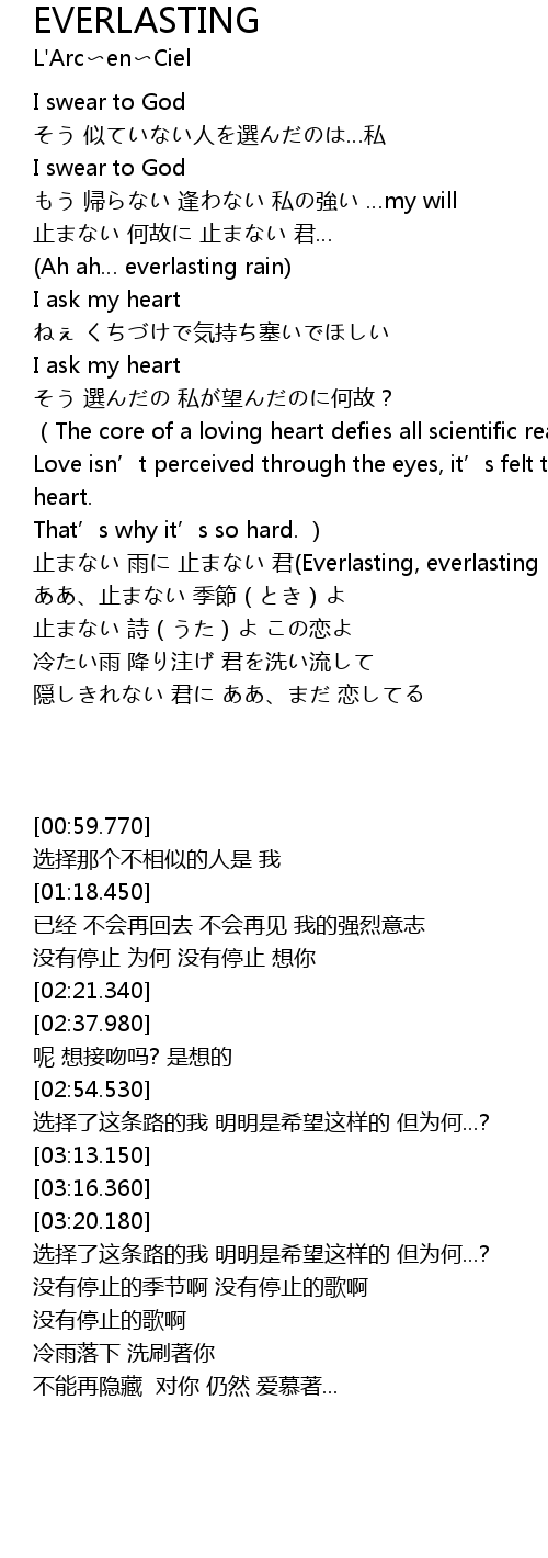 | [03:23.810] | zhi yu zhi jun Everlasting, everlasting rain |