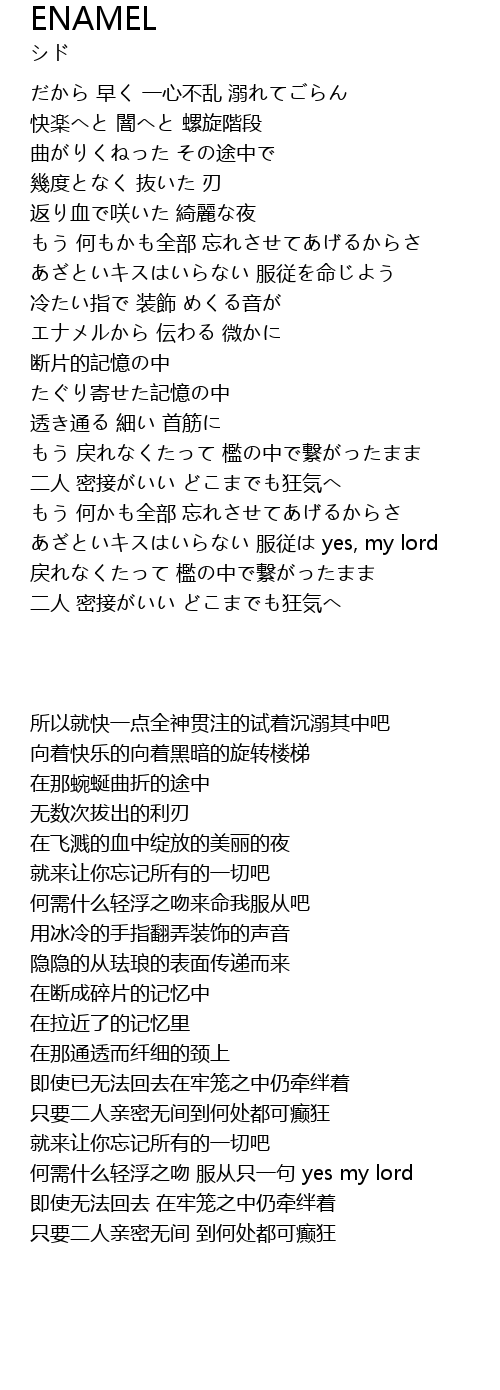 | [00:38.420] | 快楽へと 闇へと 螺旋階段 |